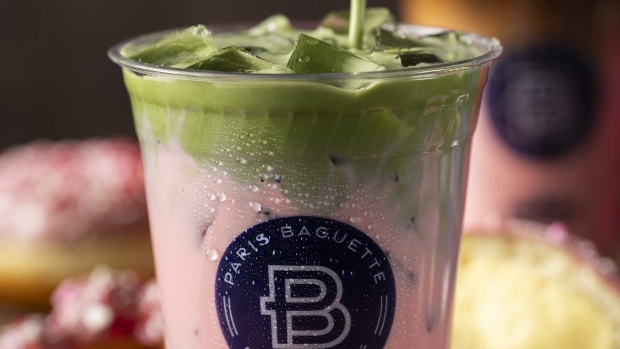 Enjoy our Pink Velvet beverages, including matchas and lattes.