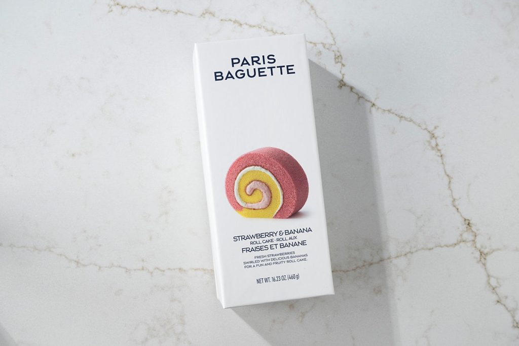 Menu / Roll Cakes & Packaged Treats / Strawberry Banana Roll CakeStrawberry Banana Roll Cake Delicious strawberry swirled with banana for a fun and fruity roll cake. Contains: Coconut, Egg, Milk, Soy, Wheat 260 Calories per serving