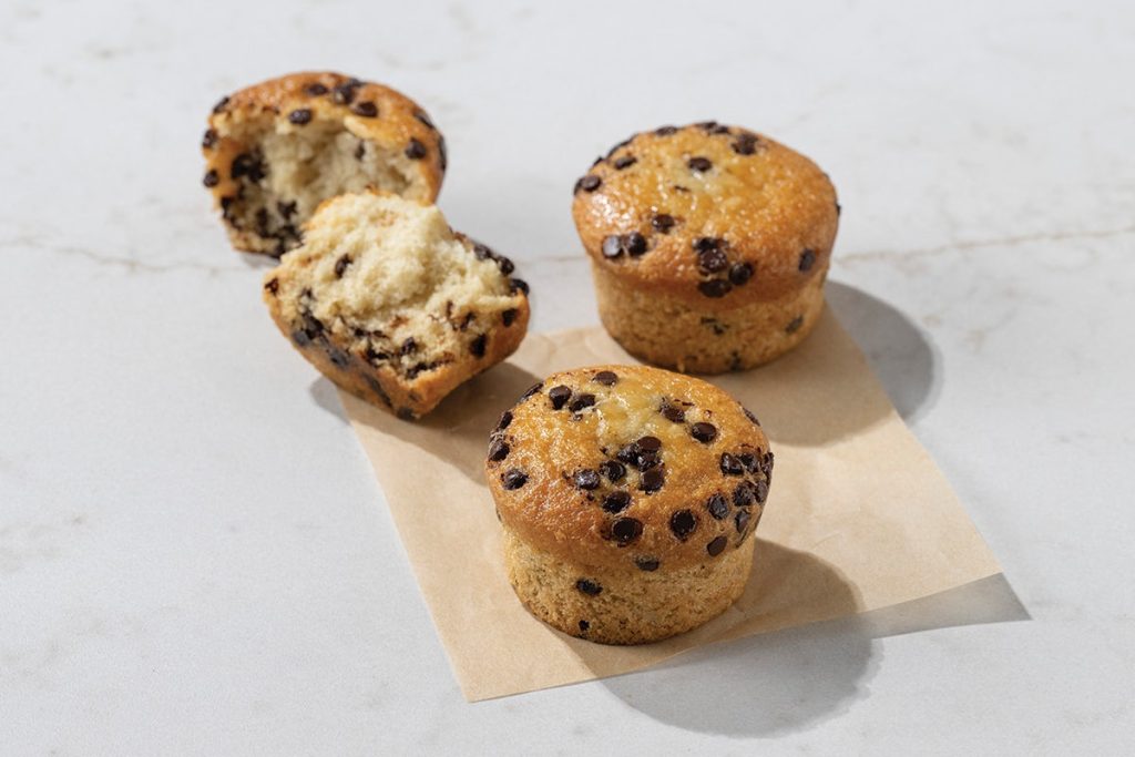Menu / Grab & Go / Vegan Chocolate Chip MuffinVegan Chocolate Chip Muffin Vegan muffin with semi-sweet chocolate chips. Contains: Soy, Wheat 520 Calories per serving